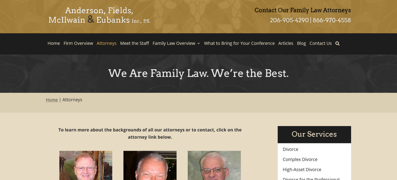 The Seattle-based law firm of Anderson, Fields, McIlwain & Eubanks has been providing family law services since 1977. They are one of the longest operating firms specializing in family law in their community and offer a comprehensive award-winning practice.