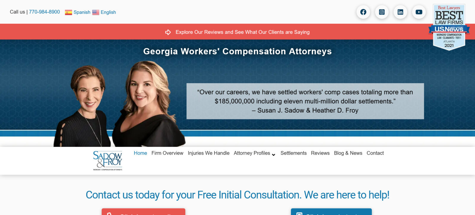 At the Atlanta-based law offices of Sadow & Froy, they exclusively handle workers’ compensation cases. They have developed an experienced and committed team that works tirelessly to provide fantastic service to people injured at work.